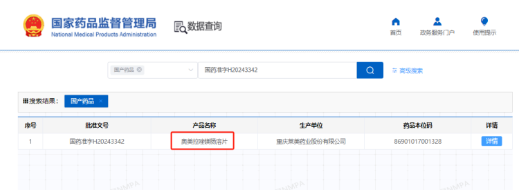 近日,重慶萊美藥業(yè)股份有限公司(以下簡稱“公司”)收到國家藥品監(jiān)督管理局核準(zhǔn)簽發(fā)的規(guī)格為20mg的奧美拉唑鎂腸溶片《藥品注冊證書》,證書編號2024S00403。