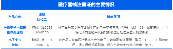 日前,萊美藥業(yè)控股子公司海南萊美醫(yī)療器械有限公司(以下簡(jiǎn)稱“海南萊美醫(yī)療器械”)研發(fā)的“醫(yī)用電子內(nèi)窺鏡圖像處理器”和“電子支氣管鏡”,獲得海南省藥品監(jiān)督管理局頒發(fā)的醫(yī)療器械注冊(cè)證。